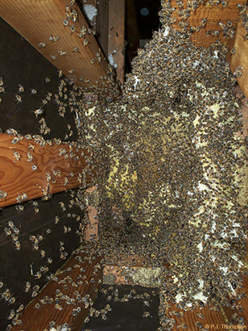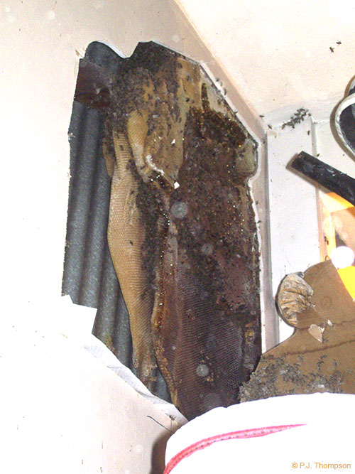 Bees and comb in roof space.