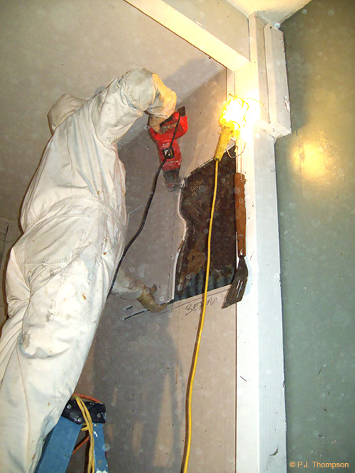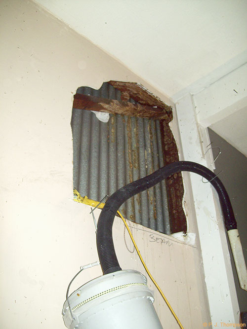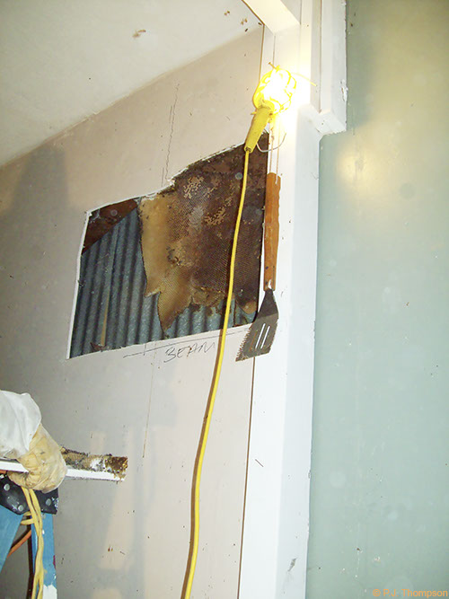 Interior wall space after bee removal.