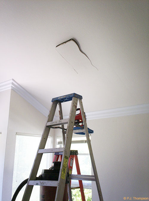 Preparing to remove bees from ceiling.